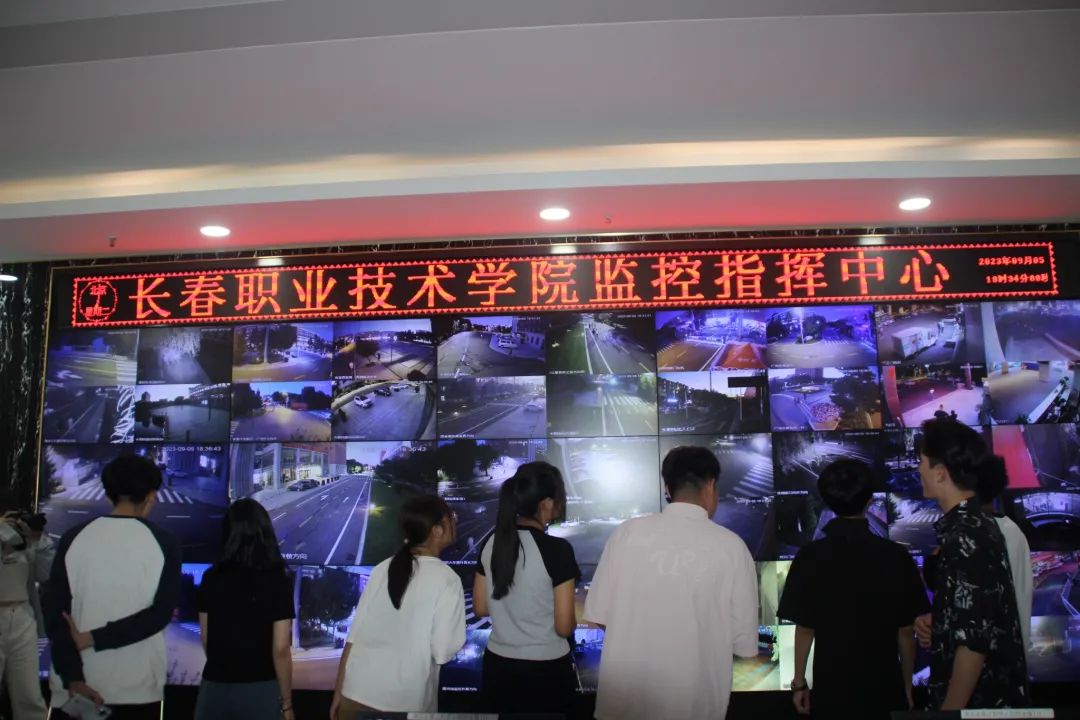 同日傍晚18:00,同学们走进学校监控室,由保卫处老师给同学们介绍了学校网络监控中心的运行值守、摄像头数量、视频存储天数、校园监控全覆盖等相关情况。
