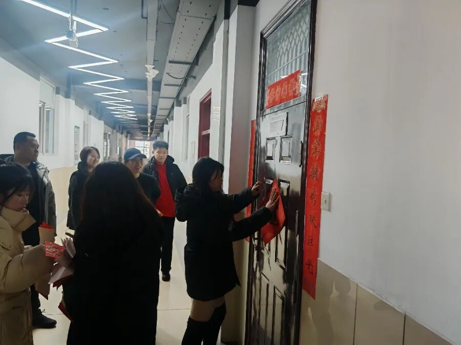 墨香盈袖,福满新岁。师生们满怀热忱,将饱含心意的春联与“福”字精心整理,带着对新年的祈愿和对学院的深情,亲手张贴于各个科室、实验室以及教研室的门窗之上。