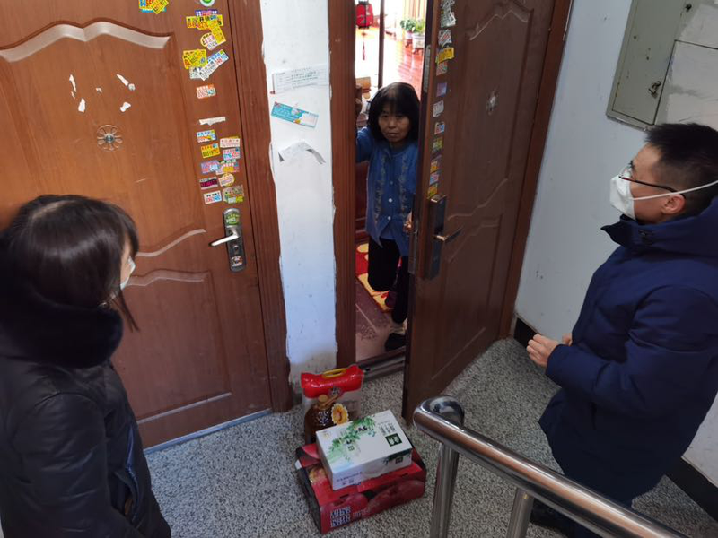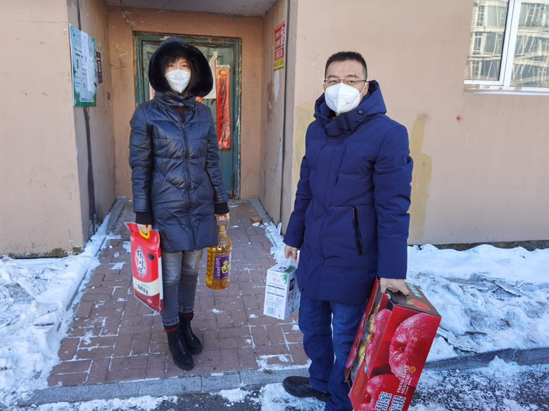 按照学校党委“两节”前后开展包保街道独居空巢老人关心关爱行动的工作安排,304永利集团党总支负责净月开发区福祉街道潭西社区望月山庄、壹英里两个小区10位独居老人的包保工作。1月2日上午,党总支组织党员到包保的独居老人家里慰问,了解独居空巢老人的基础病症、感染情况、生活状况,送上米、油、奶、水果等慰问品,表达全体党员的关心和爱心,配合社区做好独居空巢老人身体健康、生活保障工作。