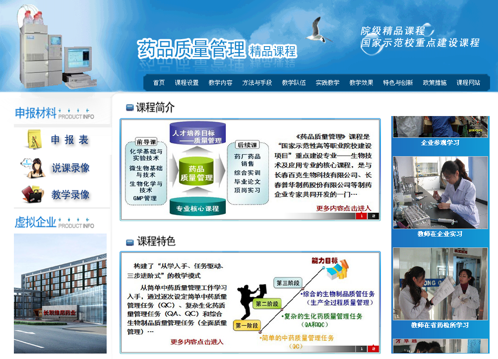 药品质量管理课程(现调整为药品质量检测技术和药品质量保证实务两门课程)为药品生物技术专业和中药制药技术专业的核心课程,主要面向制药企业质量管理岗位,培养学生质量保证(即QA)和质量控制(即QC)的专业知识和职业能力,为学生今后从事QA和QC工作奠定基础。