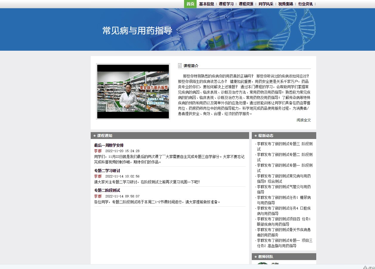 常见病判断与用药指导课程主要以常见疾病为载体,通过真实生动的实例,介绍常见疾病的临床表现、判断要点、治疗方法和常用药物。使学生能够对各系统的常见疾病和常用药物有整体把握,并在知识掌握的基础上指导实践,为患者的用药安全、有效、合理、经济等方面给予综合的药学服务。