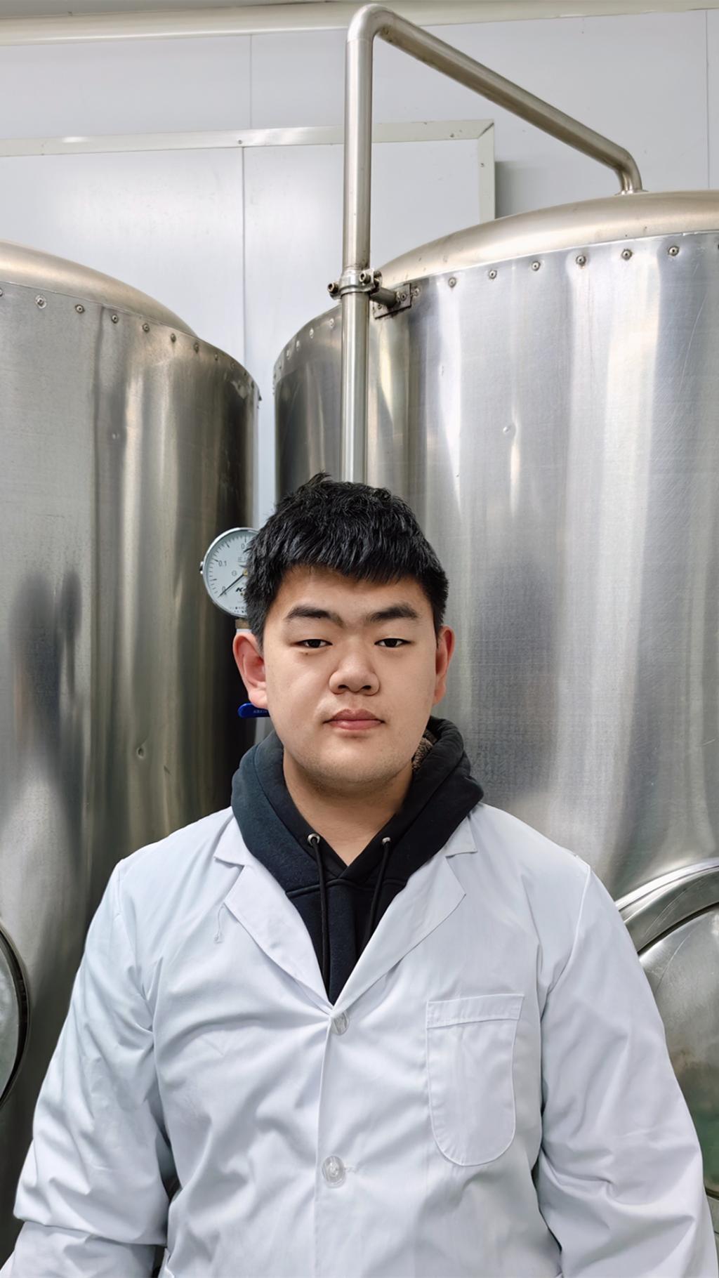 白惟天,男,1997年3月出生。2019年毕业于长春职业技术学院食品分院,毕业后进入吉林省苏美尔生物科技有限公司从事精酿啤酒酿造工作,现担任批量酿造总酿酒师。他从基层酿酒工作做起,敢于吃苦、乐于助人,通过自己的工作经验和奇思妙想帮助公司提升工作效率、减少原料浪费,面临事故临危不乱避免了公司重大财产损失。荣获公司20、21、22年度生产标兵称号,20、21年度最佳员工称号。